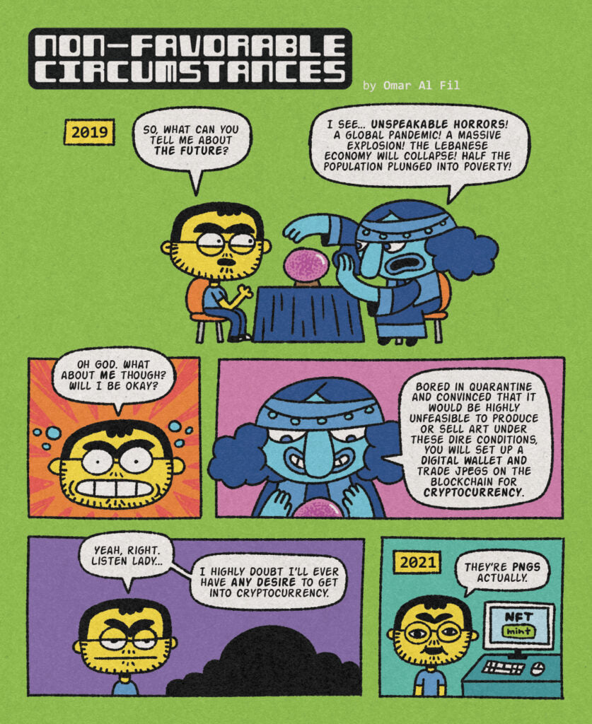 يتهيّأ لك أنك تقضين وقتك لا تتحدّثين إلّا عن المال، أو على الأقلّ لم يحصل أن تحدّثت عن المال بقدر ما فعلت طوال السنتين الماضيتين. شاهدت سعر صرف الليرة يزداد عشرين ضعفاً مقابل الدولار، فتحوّل مالُك من كائن محسوس إلى آخر وهمي، يقال لك أنه لا يزال موجوداً في المصارف، من دون أن تتمكّني من لمسه. لن تلمسيه، ولكنك ستنفقينه وفق أسعار صرف تتبدّل مع ساعات النهار. مالك إمّا محتجز في المصارف، وإمّا سائل متحوّل أو متجمّد على شكل نقود معدنية صارت كنوزاً أثريّة تحيلك إلى حياة غابرة لا تحاكي انهيارك المعاصر. كلما انهارت الليرة أمامك، كلّما لجأت إلى مصطلحات جديدة يصعب عليك شرح معناها لمن لا يعرف سوى عملة واحدة، مستقرّة وأنيقة. تقضين أيّامك تتحدّثين عن المال، ولكن كيف تكتبين عنه؟ في هذا العدد من فَمْ موادّ تتناول المال كما تنظّمه السلطة وكما تتفاعل معه الرغبة، مستكشفةً العوالم بينهما. تُظهر القصص القصيرة والمقالات والأبحاث والنصوص الفنّية كيف أنّ الكتابة عن المال هي ممارسة مستحيلة في الجري وراء ما هو سائل. ترينه ينساب دون قالب ثابت، يتفلّت بين يديك فيما تسعين للإمساك به. فالمال يجمع بين المعنى ونقيضه، هو الهدف الذي تسعين لأجله، أو مجرّد وسيلة لتحقيق أهداف أخرى. وقد يكون أحياناً الغاية والوسيلة معاً: تُدينين تراكمه لدى البعض فيما تُثمّنين سعي آخرين إليه. يعود المال ويتجمّد، فيذوب، يتدفّق، يفيض، ثم ينبض من جديد. مهما حاولت، لن تصلي إلّا إلى خلاصات سائلة حول الذات التي تتطبّع على إيقاع المال وخسارته. تصوّر دانا الأسير فانتازيا العودة إلى زمن طفولي سابق للحداثة البيروتية وسيلةً للاحتماء من ضجيج الانهيار وألمه. بين الفانتازيا والمعدن، تتحدّث سلوى الأرياني عن العملة الوطنية بصفتها سيولة متحجّرة، فتقوم برحلة تقفّي أثر الصور التي تحملها القطع المعدنية والأوراق النقدية اليمنية، فتنظر إلى الدالّ السلطوي المنقوش على العملة بشكليه الأثري والهندسي، وقد فقد صلته بالواقع الذي يدلّ عليه. فالأمكنة، وإن ثُبّتت صورتها على العملة، فإنّ ما مِن أثر لها في الواقع، أو أنها اكتسبت معاني عادت وفقدتها. ولكن كيف فقدتِ ما فقدته؟ لم تعد الإجابة غامضة. فهناك آلية سهّلت السلب المقنّع والممنهج الذي شهدتِ عليه في جمهورية ما بعد الحرب. فكما يتبخّر السائل من المستوعبات، يختفي المال الذي بدا لك صلباً ذات يوم. يقال لك إن صبرت قليلاً وحدّقت كثيراً، فلا بدّ أن تريه. يصوّر لطفي زايد في قصّته المصورة خفة النهب المعطوف على الخداع القائم على التزوير، سلسلة لا تلبث أن تتحوّل إلى دائرة مقفلة تعيد إنتاج النهب بالخفّة ذاتها. في مقالة مروة أرسانيوس مقاربة عابرة للحدود اللغوية والقومية حول إرث النساء كسائل متبخّر: كيف يتعرّض جنى عمر العاملات للإخفاء، كيف تُنهب بذور وأراضٍ من يد مزارعات كولومبيات، من جملة ممارسات أخرى لنهب ثروات النساء التي تشكّل ذاكرة عابرة للأجيال انسلّت إلى لاوعي الكاتبة لحظة الانهيار اللبناني. تحيلك هذه الخسارات إلى السؤال الأكثر سيولة: هكذا تفقدين المال، ولكن كيف ترغبين فيه؟ يدلّ المال على مكمن رغبتك، رغبة تسعين إلى تحقيقها فيما تتفلّت منك وتتفلّتين منها. تخشين الاعتراف برغبتك بما هو مادّي، فتنكرينه وتعقلنينه وتضبطينه ليعود ويتجلّى انفعالات: تخافين من فقدانه، قد تقرفين من رؤيته يُستعرض أمامك، أو تخجلين من الرغبة به، وتحزنين من الانكسار أمامه أحياناً. هكذا يتحدّث راوي مو مصراتى عن علاقته السائلة بالمال، هو المدمن السابق الذي يقفز بين الجوع والإفلاس والتهرّب من الدائنين فيما ينفق مالاً لا يملكه بعد، كي يراكم مالاً يعرف إنه لن يجنيه، فيما ينكشف أمامه زيف الكتابة التي تعد برغد الحياة واتّساعها. ولكن حتى عندما تتحقّق رغبة الراوي بالمال، فإنه يعود ليواجه هشاشته. يتناول محمد ربيع هشاشة رأس المال وهشاشة من يمتلكه من خلال النظر إلى التماسك الظاهري لرأس المال الذي يحرس الانقسام الأفقي بين الط