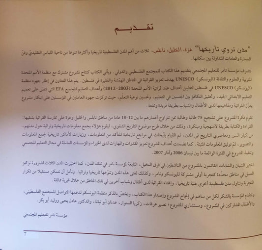 مدن تروى تاريخها: نابلس، الخليل، غزة - غلاف مُقوّى
