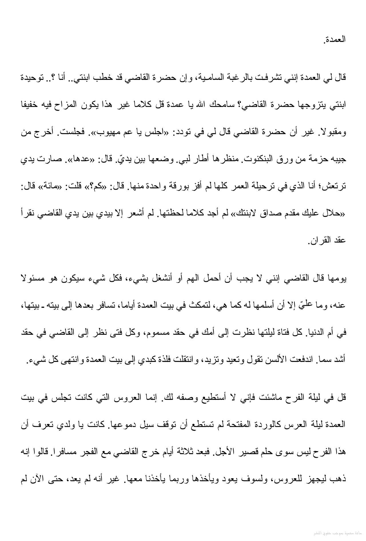 في روايته الجميلة هذه، والتي صدرت للمرة الأولى عام 1978، يكشف الكاتب الكبير خيري شلبي صفحة من أسرار ريف الدلتا في بدايات الخمسينيات. حيث ينسج عالمًا واسع الثراء عن «طلعت» الذي يبحث عن أبيه «القاضي» الذي زار بلدتهم لأيام تزوج فيها الأم «توحيدة»، ثم اختفى ولم يظهر أبداً. وعن تتبُع الشرطة والأهالي لحقيبة "الحاج سليم" مقاول الأنفار التي اختفت من بيت عمدة القرية بما تحتويه من "كنز" هائل، بعد مقتل المؤذن، الذي كان متوقعاً أن يصبح الشاهد الوحيد على السارق، في الليلة نفسها