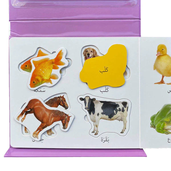معَ الصُّورِ المُشرقةِ وقطعِ المطابقةِ والتَّرتيبِ تُساعِدُ هذهِ المجموعة طِفلك على تطويرِ التَّعرُّف على الكلماتِ الأُولى، والألوانِ، والحيواناتِ، والأرقامِ، والمهاراتِ الحركيَّةِ الدَّقيقةِ