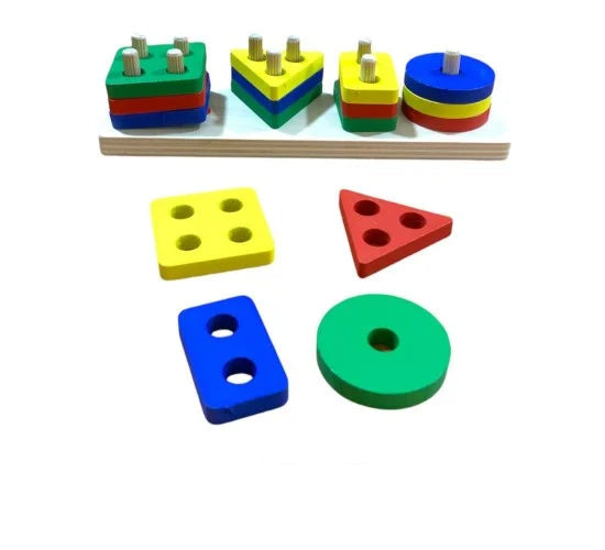 تجميع أشكال هندسية - 4 عامود قاعدة مستطيلة خشبية