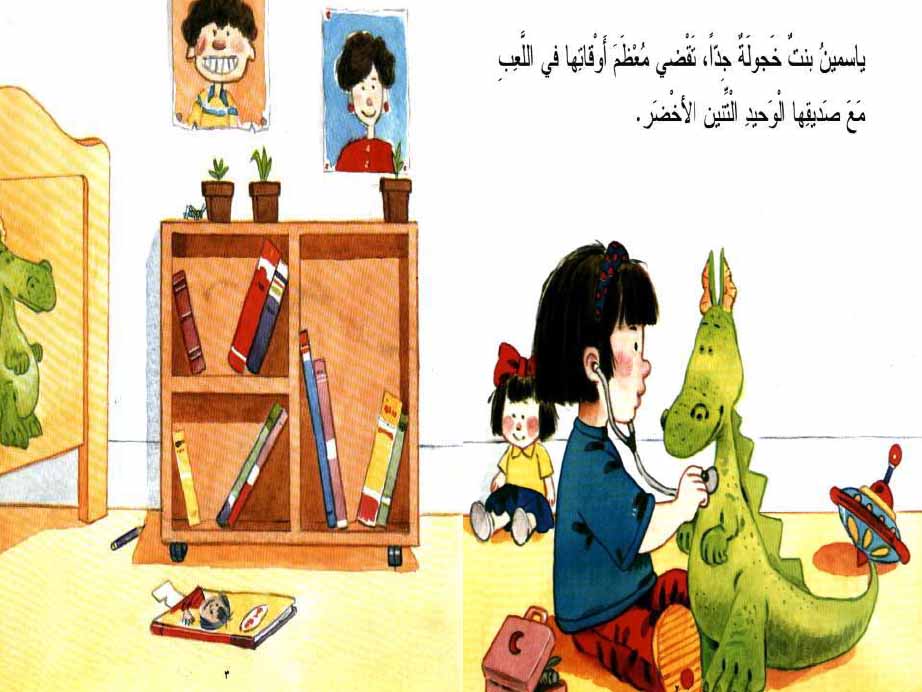 قصة رائعة تقترب من عالم الطفل ومن تفكيره ومشاعره. تتحدث عن فتاة خجولة لها صديق وحيد هو التنين الأخضر الذي يرافقها إلى كل مكان، وفي يوم يحدث شيئء فارقٌ في حياتها، يشجعها على كسر حاجز الخوف ،والخجل ،وتجربة مغامرة جديدة مع صديق جديد. ففي يوم من الأيام تسقط كرة في غرفة ياسمين وتدفعها للبدء في بناء صداقة حقيقيّة