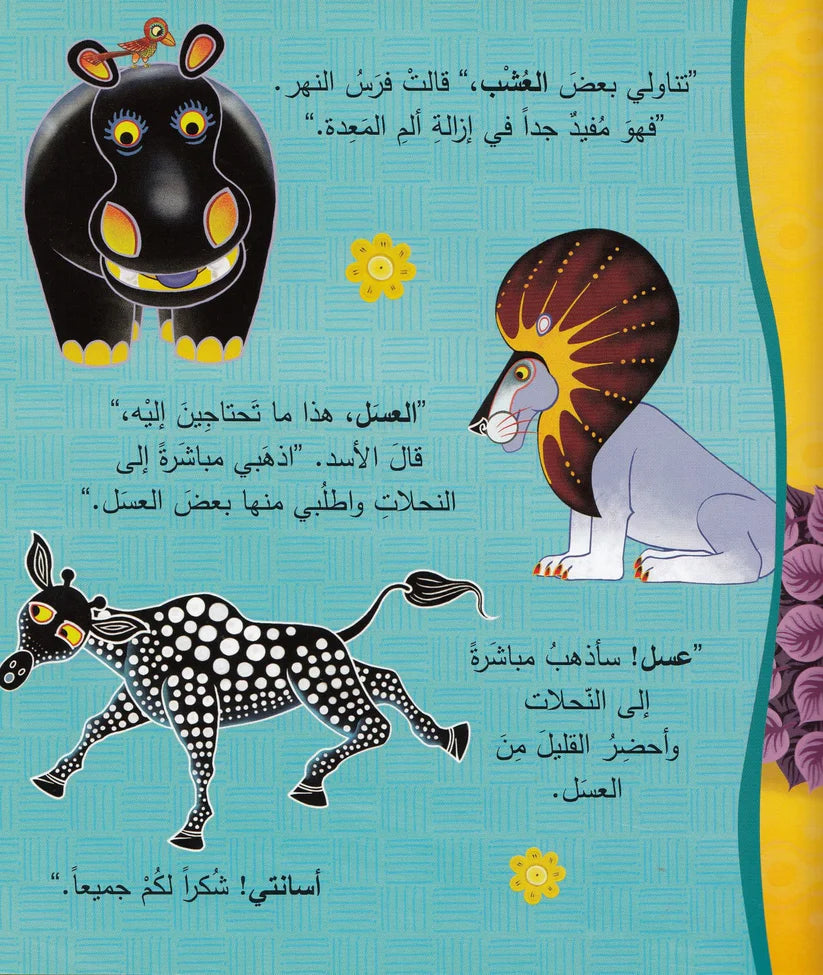 إذاً، ماذا حدثَ عِندما حاولَتِ الزَّرافةُ الحُصولَ على بعضِ العسلِ منْ داخلِ جذعِ الشَّجرةِ؟