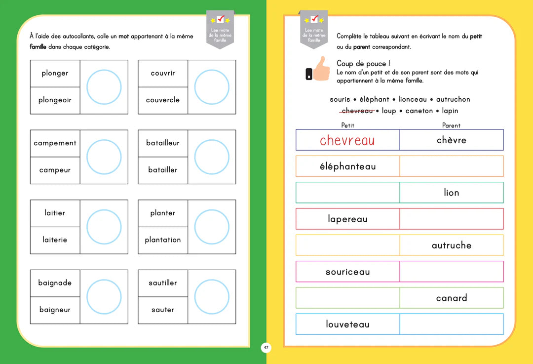 Plus de 230 activités éducatives et amusantes pour préparer l’enfant à la 1re année du primaire! Les concepts de base d'éducation incluent: français, calculs mathématiques, géométrie, sciences et technologie, lecture…et plus encore! +100 autocollants!
